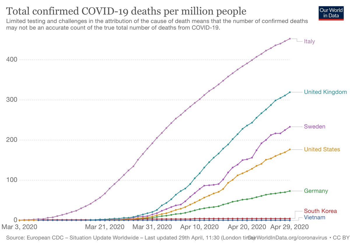 Max Roser Twitterissa The Differences Between Countries Are Very Large Some Were Able To Keep The Death Rate Very Low Here Is Interactive Chart Where You Can Compare Any Other Country