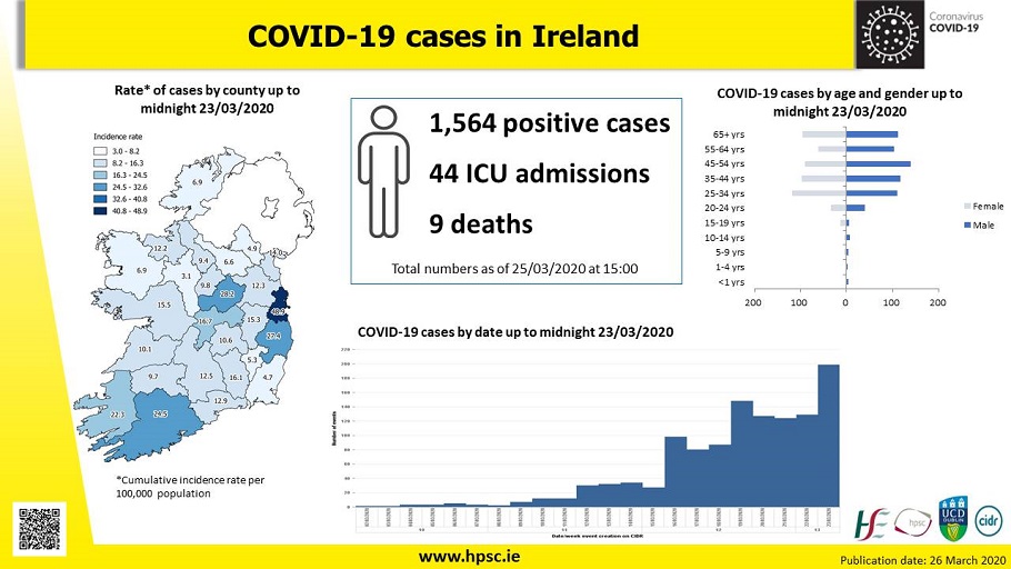 Hse Health Protection Surveillance Centre Hpsc Pa Twitter As Of 25 03 2020 At 15 00hrs There Have Been 1 564 Cases Of Covid 19 Notified In Ireland To Hpscireland 44 Covid 19 Patients Have Been Admitted To
